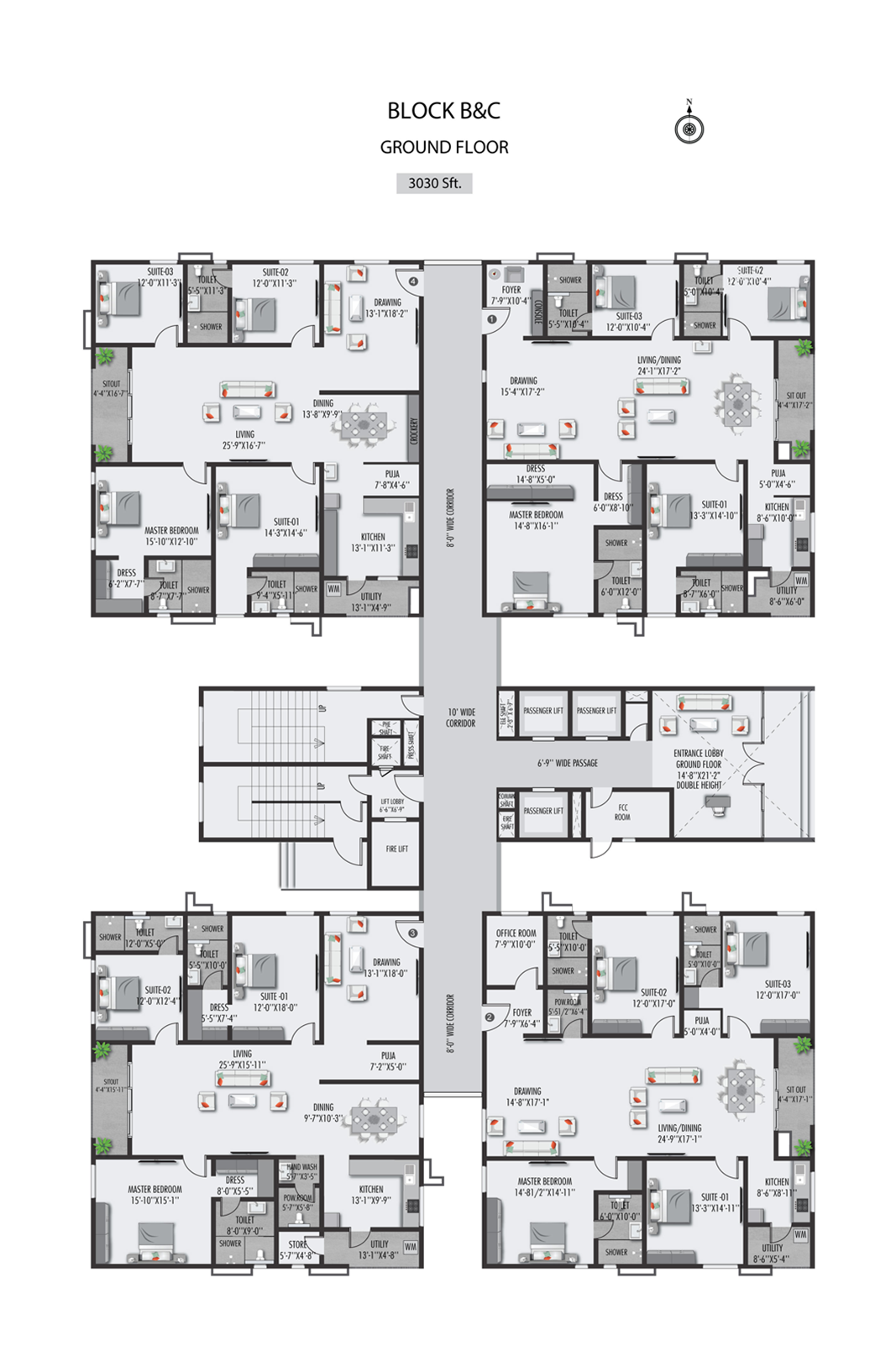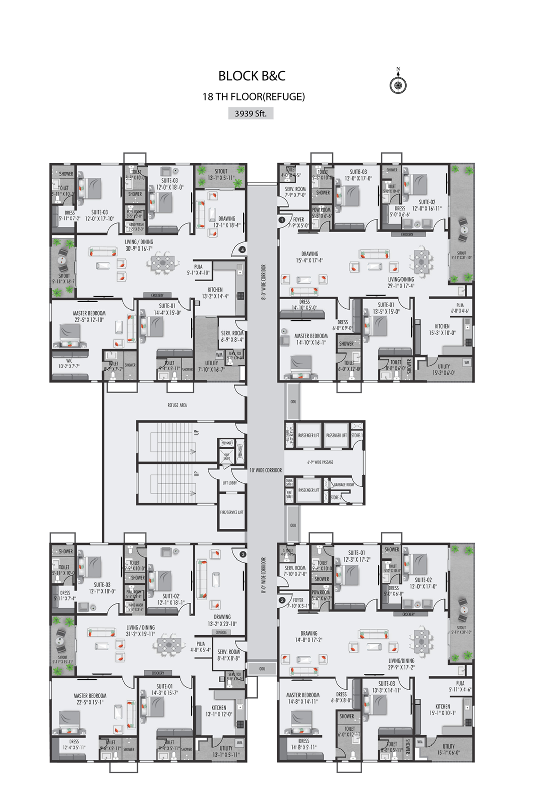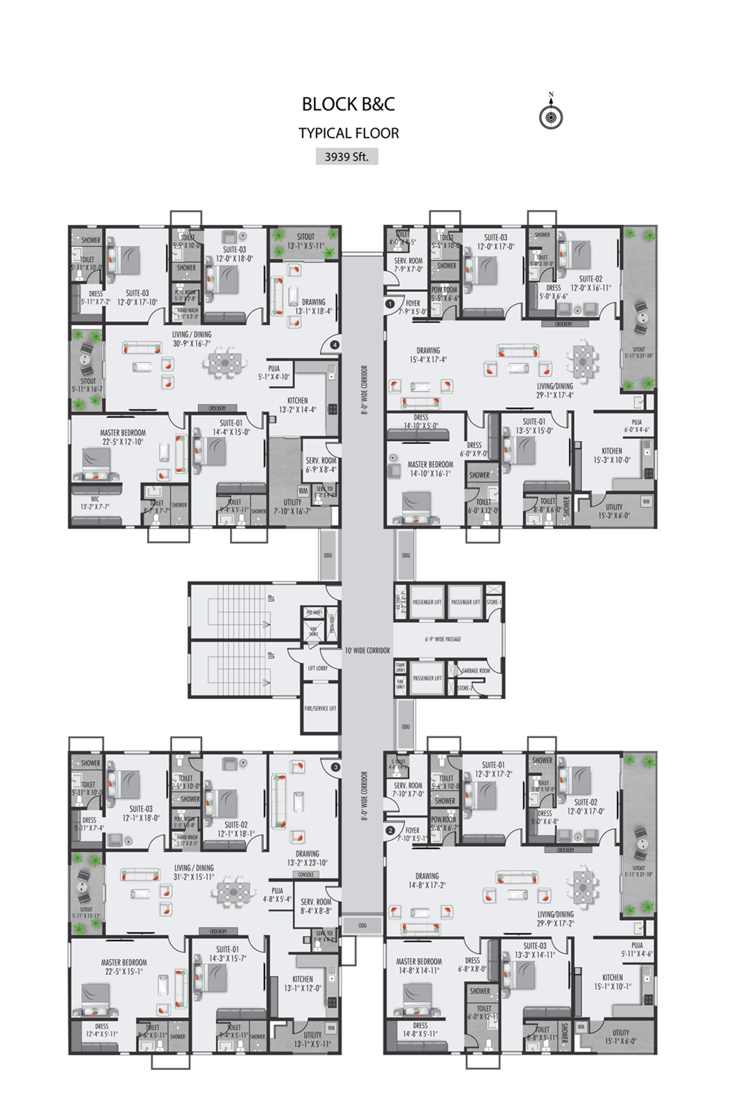 The windows and french doors of 7’6” high are planned efficiently to let in maximum sunlight into the homes. There are around 3400 windows, 2000 ventilators, 900 French doors that will be installed at THE CLASSE with precision.