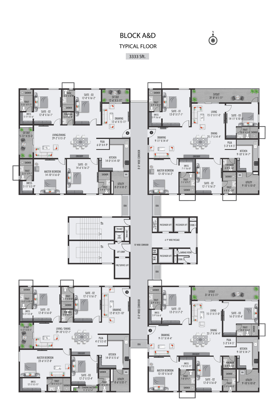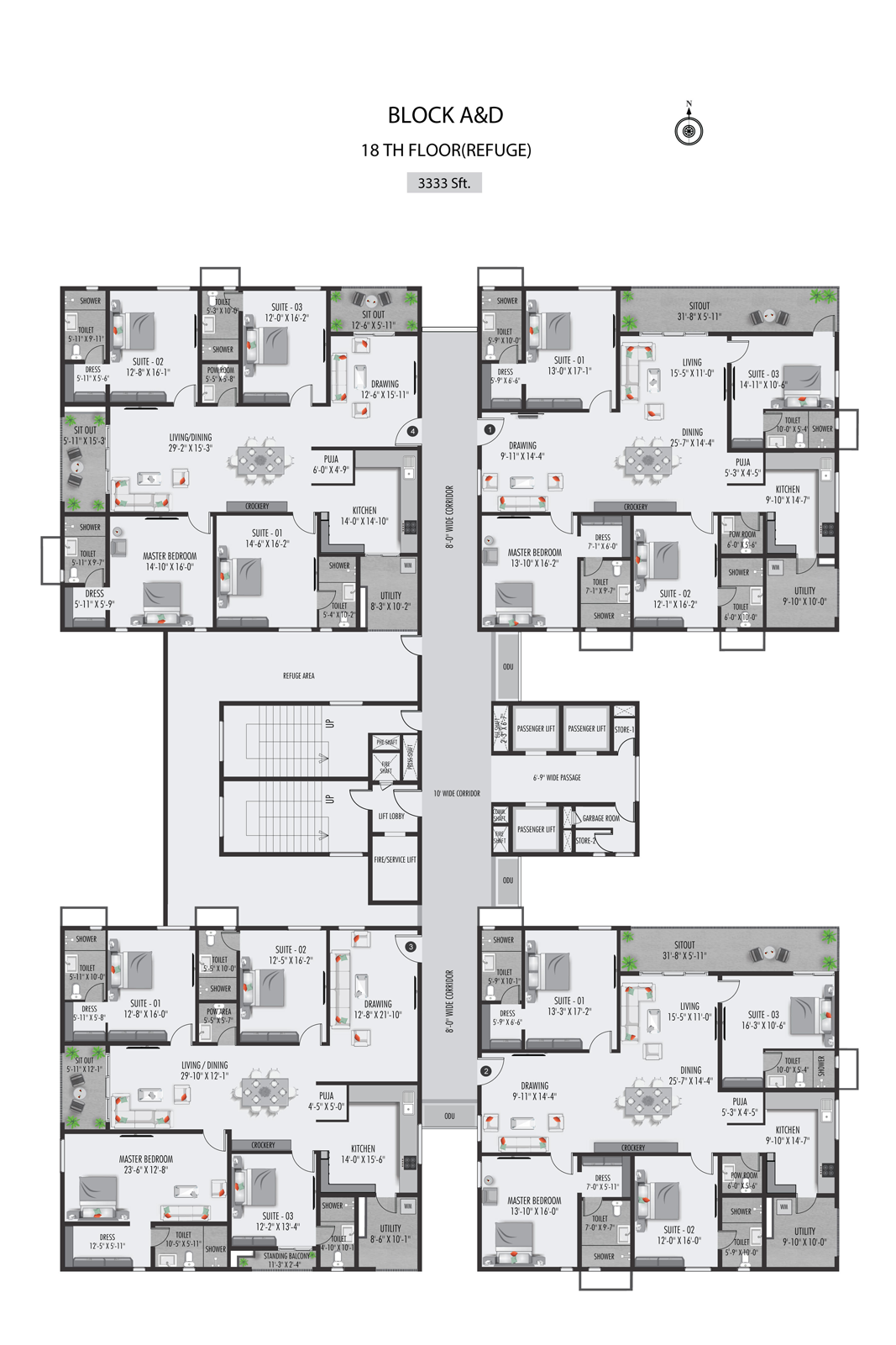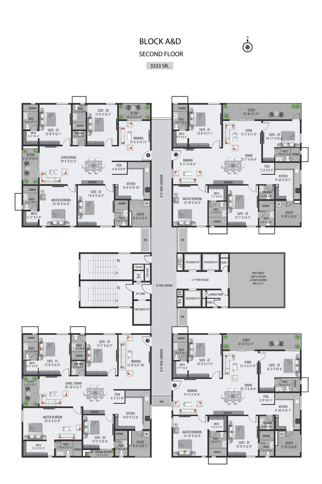 The windows and french doors of 7’6” high are planned efficiently to let in maximum sunlight into the homes. There are around 3400 windows, 2000 ventilators, 900 French doors that will be installed at THE CLASSE with precision.